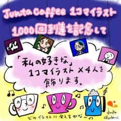 2023年7月6日 / 最終更新日時 : 2023年6月2日 珈琲順太 今日の珈琲イラスト 2023年07月06日 今日のイラスト 明日は七夕&個展「私の好きな」 そんなわけで 明日からスヤ子さんの個展が開催されます。 Junta Coffee®︎メンバーの選んだ 「私の好きな」今日のイラストも展示しますよ! 茶谷順子 イラスト作品展示販売会「私の好 […]