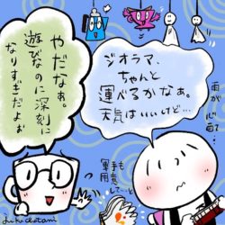 2023年10月6日 / 最終更新日時 : 2023年9月30日 珈琲順太 今日の珈琲イラスト 2023年10月06日 今日のイラスト ジオラマ箱庭世界の運搬 明日10月7日に牛久で開催される「Junta Coffee®箱庭世界 運転会」 ジオラマのサイズは120㎝×75㎝もあるので、運搬が大変。 スヤ子さんは律儀に運搬の心配をしています。 半分遊びなの […]