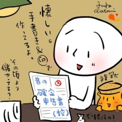 2025年4月12日 / 最終更新日時 : 2025年3月30日 珈琲順太 今日の珈琲イラスト 2025年04月12日 今日のイラスト 過去の確定申告書を眺めてみた 確定申告 今はWEBでできますが ついこの前までは手書きでしたね。 期限内に書類を出さないと慌てるので 書く体(体裁)深刻と言ったものです。 確定申告はパソコンで打ち込み税務署へ持って行く派 […]