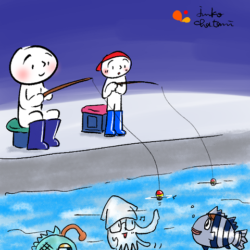 2025年4月10日 / 最終更新日時 : 2025年3月28日 珈琲順太 今日の珈琲イラスト 2025年04月10日 今日のイラスト 何が釣れるか Junta Coffee®釣り堀 ここは、大物が釣れそうな釣り堀 チョウチンアンコウの紙魚 おもろイカ 紺グレの美しい鱗を持つエリタイ 食べられない魚たち 鑑賞魚?干渉魚?感傷魚 【エリコ】